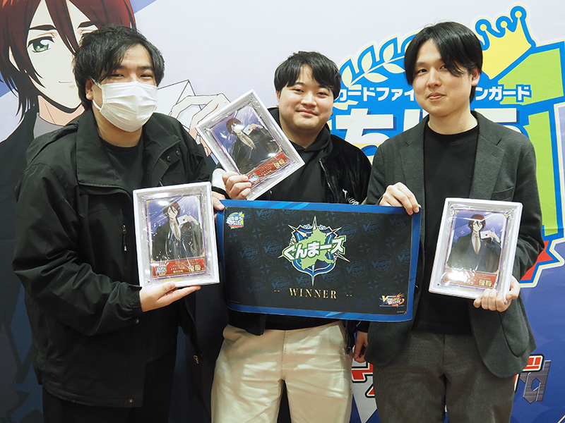 左から先鋒「チャリオ」選手、中堅「ネコ」選手、大将「バエル」選手
