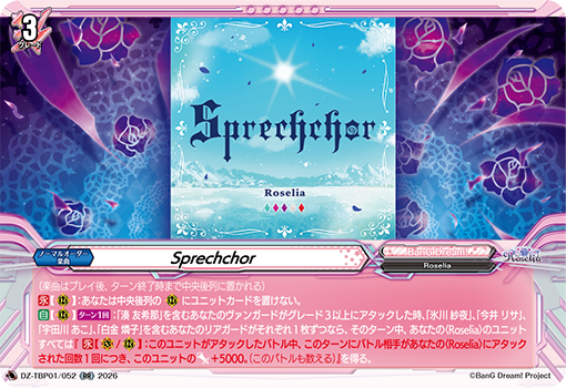 ※「スポラディークセロ・ドラゴン」「エーベンフォルツ・ロートバイザー」「フィーレ・ブランデ」「[揺るぎない信頼] 湊 友希那」「[圧倒されるほどの] 湊 友希那」「[押し殺した想い] 湊 友希那」「[歌姫の覚悟] 湊 友希那」「[一音一音、積み上げて] 氷川 紗夜」「[これぞ運命!] 今井 リサ」「[高みの先の頂点へ] 宇田川 あこ」「[伝わる音色] 白金 燐子」「Sprechchor」「閃光」「紫炎」「かけがえのない思い出」「溢れ出る想いと詞」「積み重ねる時間」「夢中のひととき」「紡ぐ想い」「それぞれの夢」「みんなで一緒に」「小さな幸せ」は『どこヴァン!ねお』(第228回)にて紹介されました。